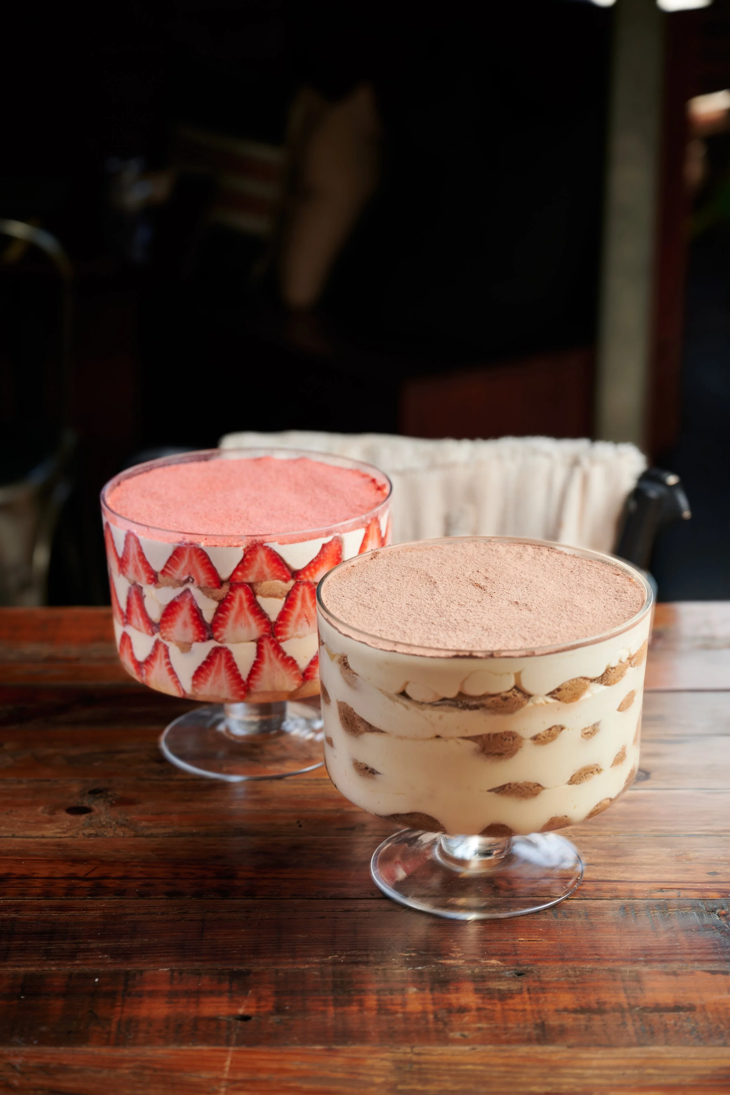 Choose from our classic tiramisu or a fresh strawberry twist - perfect for sharing at the table, and only available for dine-in.